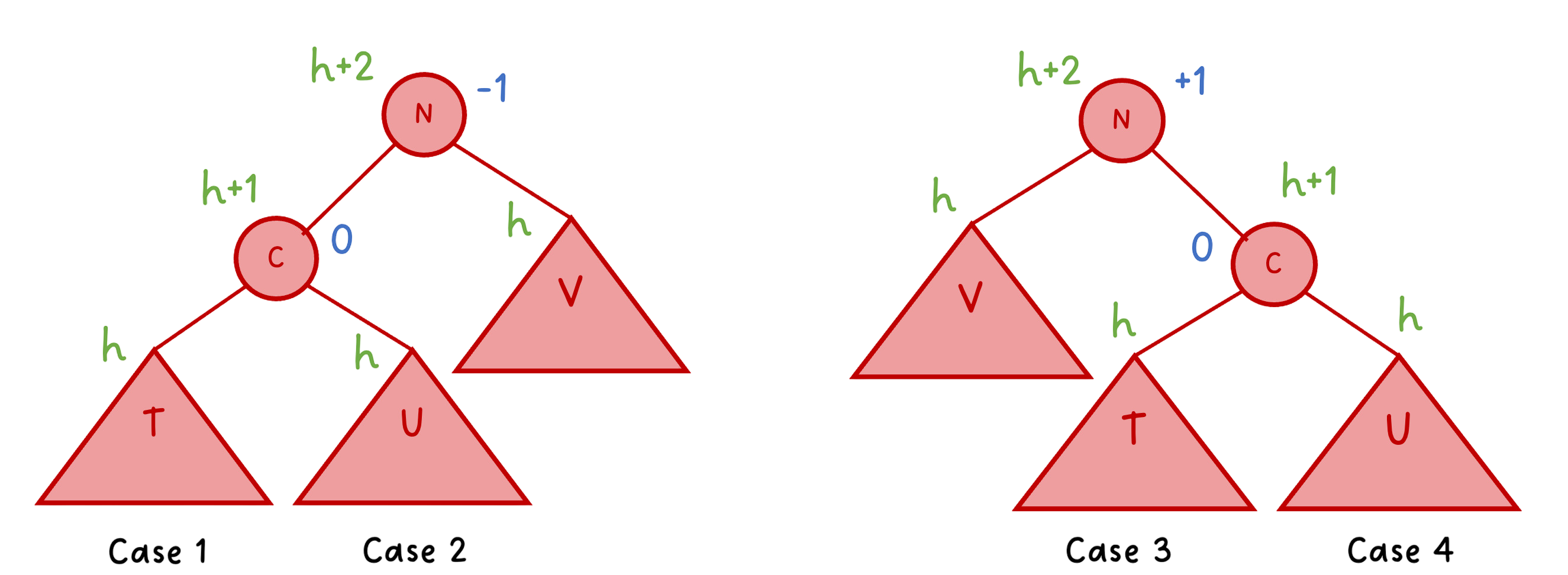 the four cases are as follows that could unbalance our tree are